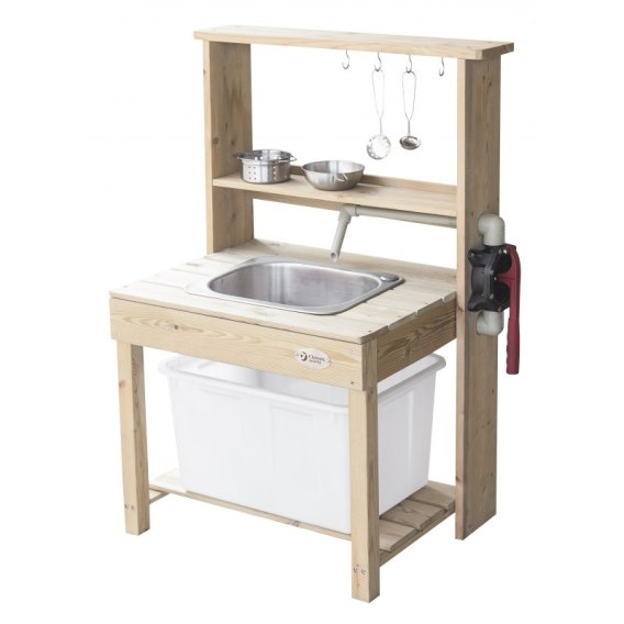 Przepiękna Drewniana Kuchnia Outdoor od renomowanej marki zabawek drewnianych Classic World to świetna propozycja dla dzieci, które lubią wcielać w różne role osób dorosłych podpatrzonych w życiu codziennym. Drewniana zabawka pozwoli na odgrywanie ról, wpłynie także pozytywnie na integrację z innymi dziećmi poprzez wspólną zabawę oraz nauczy odpowiedzialności. Dzieci będą mogły poczuć że są prawdziwymi szefami kuchni, a zabawa w przygotowywanie potraw dla całej rodziny nie będzie miała końca. W kuchni znajduje się miejsce, aby podłączyć dopływ wody, wystarczy podstawić plastikowy pojemnik, żeby woda miała, gdzie spływać.