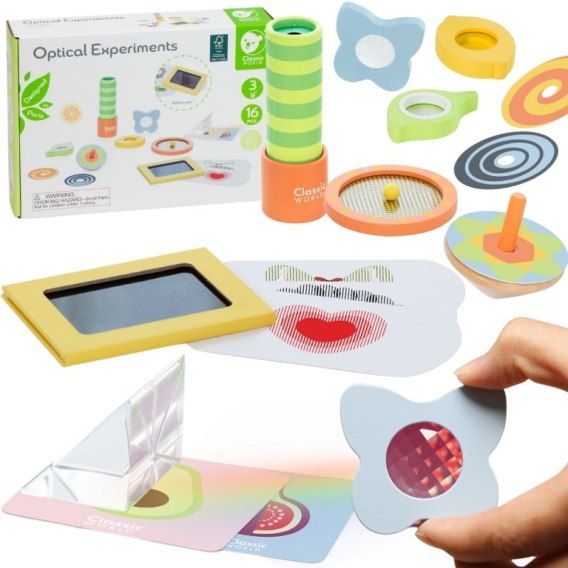 • CLASSIC WORLD Eksperymenty Optyczne Zestaw Sensoryczny Trening Zmysłów 16 el.
