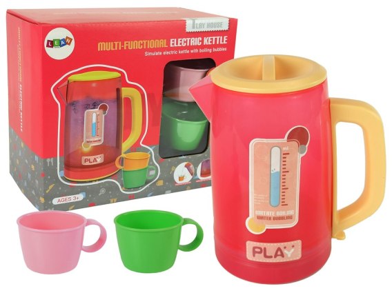 Zabawkowe sprzęty typu AGD są fantastyczną propozycją dla wszystkich maluchów, ponieważ nie tylko przynoszą frajdę, ale w dużym stopniu wpływają na rozwój dziecka. Dziecięcy czajnik będzie świetnym sposobem na wspieranie samodzielności malucha, dzięki czemu w przyszłości zaparzenie wody na herbatę nie będzie dla niego żadnym wyzwaniem. Zabawa z wykorzystaniem imitacji przedmiotów dla dorosłych ułatwia dziecku naukę bezpiecznego użytkowania przedmiotów, co jest bardzo istotne.  Czajnik posiada efekty dźwiękowe są nimi odgłosy gotującej się wody,po napełnieniu go wodą z postawy lecą bąbelki. Do zestawu dołączone są również dwa kubeczki.