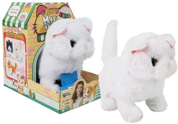 Biały puchowy kotek z dużymi oczami dodaje uroku i nie można oderwać od niego wzroku. Kotek spaceruje, lub porusza się zwiększając tempo na szybsze. Dodatkowo otwiera pyszczek, porusza ogonkiem i wydaje dźwięki po pogłaskaniu po głowie. Wyjątkowy przyjaciel dla Twojego dziecka. Zabawa sprawi mu nie lada frajdę, a może i stworzy mały kącik kotku we własnym pokoju.