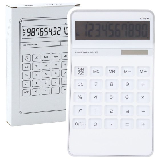 KALKULATOR BIUROWY BIAŁY - NOWOCZESNY DESIGN, PODWÓJNE ZASILANIE, 10-CYFROWY WYŚWIETLACZ