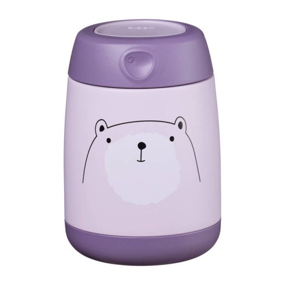 stalowy termos na jedzenie; podwójne ścianki; szczelna konstrukcja; do ciepłych i zimnych posiłków; utrzymuje temperaturę posiłków ciepłych do 4 h a zimnych do 6h*; pojemność w sam raz na mniejszy apetyt lub przysmak na przekąskę; szeroki wlew ułatwiający napełnienie i mycie; unikalne rozwiązanie zabezpieczające przed zbyt mocnym dokręceniem pokrywki; pojemność w sam raz by zabrać ze sobą do szkoły, przedszkola, na spacer lub wycieczkę; odpowiedni także na przekąski dla starszych dzieci; wysoka jakość; lekki; trwały; atrakcyjny wygląd nie tylko dla maluchów; przydatny przez cały rok w domu i poza domem.Parametry techniczne: