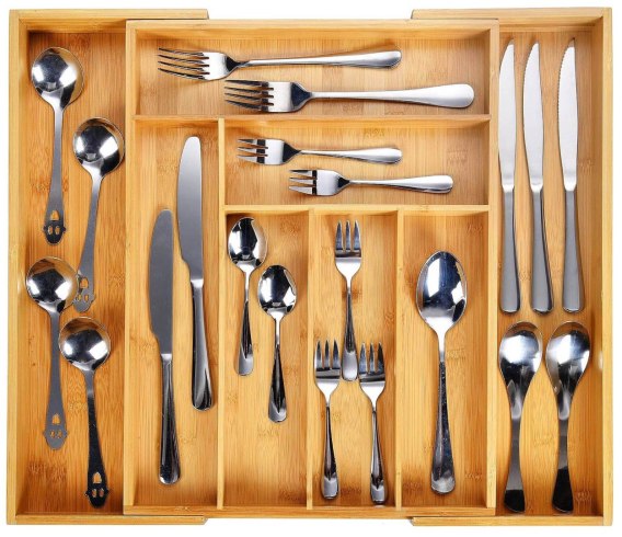 Regulowana szerokość (od 33,5 cm do 50,5 cm) dostosowuje się do różnych szuflad, oferując 8 przegródek na sztućce i inne przedmioty. To nie tylko miejsce na sztućce, ale także wszechstronny organizer do przechowywania akcesoriów czy kosmetyków w kuchni, biurze czy łazience.
