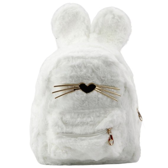 Plecak Dziecięcy Futrzany Pluszowy Uszy Nos Wąsy Królika Biały 3L 22cm