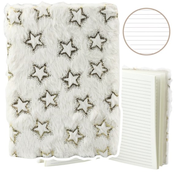 Pluszowy Zeszyt Notatnik W Linie Złote Gwiazdki Biały A5 80 Kartek