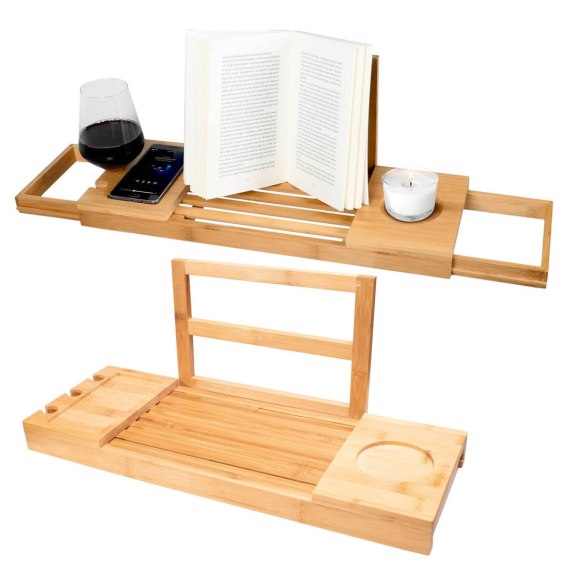 Teraz możesz zagłębić się w lekturę książki lub obejrzeć swój ulubiony film na tablecie podczas kąpieli w wannie! Podpórka jest składana, a wyżłobienia u podstawy utrzymują bezpiecznie książkę lub tablet o średniej wielkości.