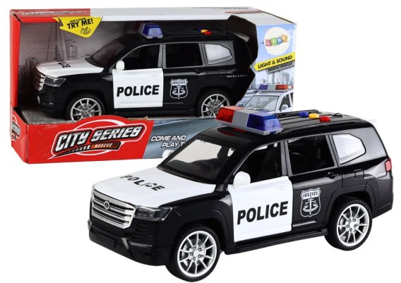To dynamiczne i interaktywne auto policyjne, które przyciąga uwagę najmłodszych entuzjastów służb mundurowych. Jego wyrazisty design w kolorze biało-czarnym, z wyraźnym napisem "Policja", nadaje mu autentycznego charakteru. Pojazd został zaprojektowany z myślą o pełnej zabawie, oferując różnorodne funkcje.