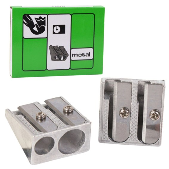 Metalowa temperówka podwójna to niezawodne akcesorium szkolne i biurowe, przeznaczone do temperowania cienkich i grubych kredek oraz ołówków. Wykonana z wysokiej jakości metalu, zapewnia długotrwałe i precyzyjne użytkowanie. Dzięki dwóm otworom o różnych średnicach pozwala ostrzyć przybory szkolne o różnych rozmiarach - zarówno klasyczne ołówki, jak i większe kredki artystyczne.