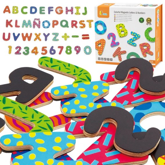 VIGA Drewniany Zestaw Magnetyczny Literki i cyferki