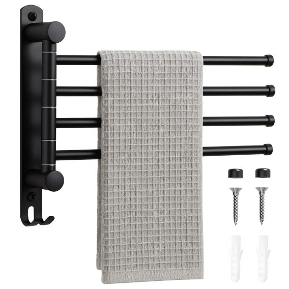 Czarny wieszak łazienkowy Cetri ma 4 ruchome ramiona, dzięki czemu można na nim rozwiesić 4 ręczniki. Wieszak został wykonany z trwałej, malowanej proszkowo stali - elegancki i odporny.