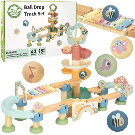 WOOPIE GREEN Drewniany Tor Kulkowy z Efektami Dźwiękowymi Cymbałki FSC