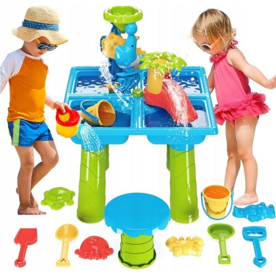 WOOPIE Stolik Wodny 2w1 Piaskownica z Krzesełkiem XL Aquapark 4-Baseny 13 akc.