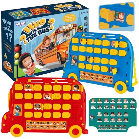 Zgadnij Kto od marki Woopie to gra dla całej rodziny, która powstała na bazie kultowego formatu "Zgadnij kto to?", ale w zupełnie nowym, atrakcyjnym wydaniu! Dzięki wyjątkowemu projektowi planszy w kształcie autobusu szkolnego, gra przyciąga uwagę najmłodszych i zachęca do logicznego myślenia, zabawy w zadawanie pytań oraz rozwijania pamięci, spostrzegawczości i komunikacji. Zabawa polega na odgadywaniu, jaka postać (człowiek lub zwierzę) znajduje się na karcie przeciwnika. W tym celu gracze muszą zadawać odpowiednie pytania i eliminować postacie, które nie pasują do udzielanych odpowiedzi. To nie tylko doskonała gra towarzyska, ale również narzędzie edukacyjne, które wspomaga rozwój intelektualny dziecka. Maluchy uczą się logicznego myślenia, formułowania pytań, podejmowania decyzji, koncentracji i wyciągania wniosków. Dzięki przyjaznej formie gra staje się pretekstem do wspólnego spędzania czasu w rodzinnym gronie. Gra to świetny pomysł na prezent, który zapewni długie godziny radości zarówno dzieciom, jak i dorosłym. Zabawka jest odpowiednia dla dzieci od trzeciego roku życia, a dzięki prostej mechanice, kolorowej grafice i trwałej konstrukcji z powodzeniem posłuży na wiele sezonów zabawy.