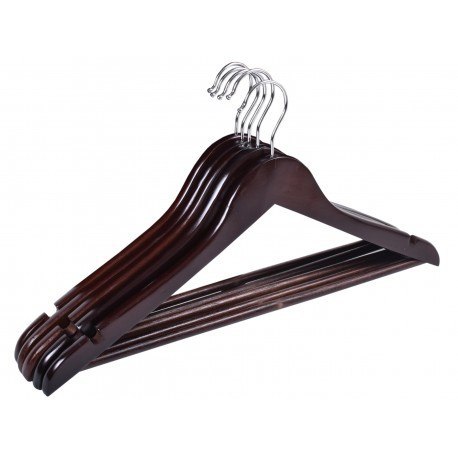 Wieszak Rondo wykonano z wysokiej jakości drewna. Został starannie wykończony i zabezpieczony farbą, dzięki czemu będzie doskonale prezentował się także w eleganckich butikach z luksusową odzieżą. W domowym zaciszu zadba o to, by Twoje ubrania nie zsuwały się, posiada bowiem specjalne wcięcia na ramionach. Dodatkowa poprzeczka pozwoli zawiesić dodatkowe elementy garderoby i zapobiegnie ich zagnieceniu. Hak wieszaka wykonano ze stali nierdzewnej, co znacząco wyróżnia go pod względem trwałości na tle konkurencji.