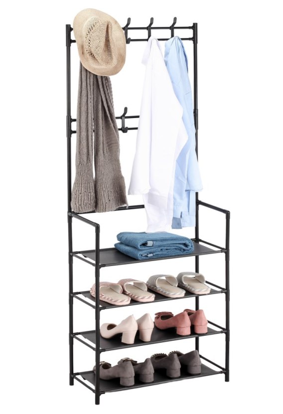 Poniżej znajdują się cztery praktyczne półki na buty, wykonane z materiału