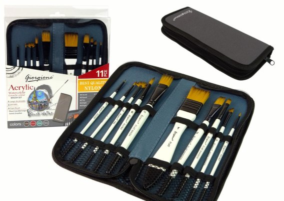 • Zestaw Artysty W Piórniku Pędzle Akrylowe 10 Sztuk