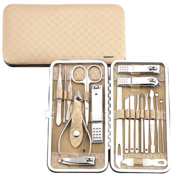 Luksusowy Zestaw do Manicure i Pedicure - 20 Elementów w Eleganckim Beżowym Etui