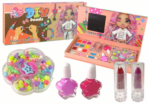 Zestaw do makijażu i biżuterii 2w1 dla dzieci. Makijaż, lakiery, koraliki i akcesoria. Kreatywna zabawa w pięknym opakowaniu.