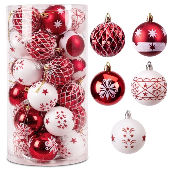 Zestaw bombek na choinkę SAPIN CZERWONO-BIAŁY 30 szt