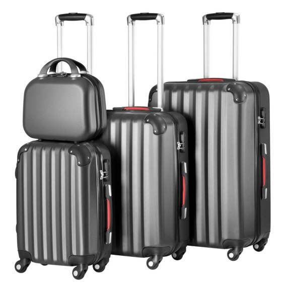 Zestaw zawiera 4 elementy: dużą, średnią i małą walizkę oraz kuferek