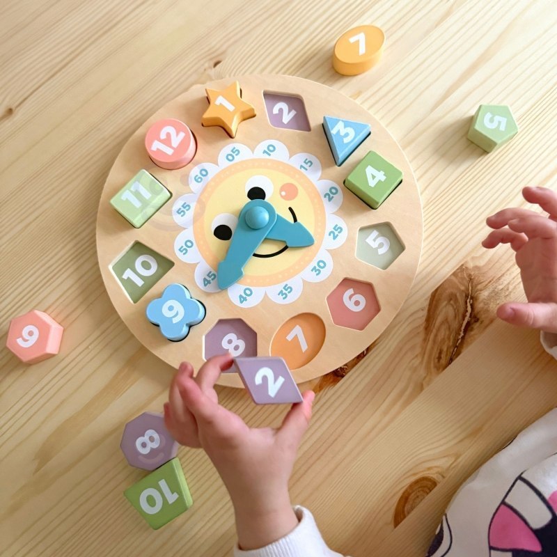 Kolorowy Zegar Drewniany Tooky Toy to nie tylko świetna zabawa, ale także pierwszy krok do nauki odczytywania godzin. Dziecko poznaje pojęcie czasu, uczy się liczenia i sortowania elementów, a przy tym ćwiczy zdolności manualne.