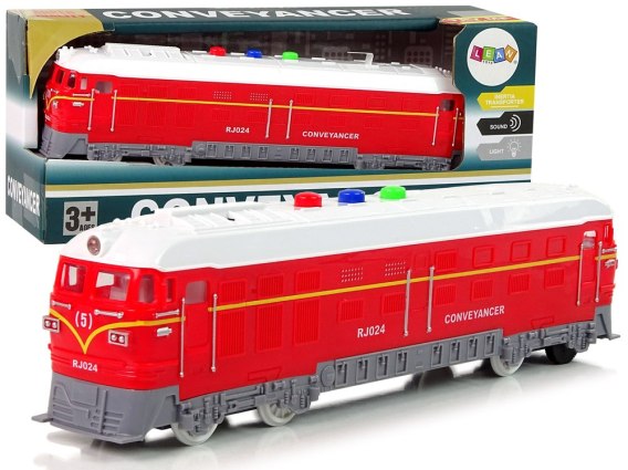 Zabawka posiada efekty świetlne oraz dźwiękowe. Po uruchomieniu przednie światło pociągu świeci się i słyszymy odgłosy pędzącego pociągu. Pozwoli rozwijać wyobraźnię dziecka i wpłynąć na prawidłowy rozwój. Wykonane w kolorystyce czerwono- białej.  Dzięki zabawie najmłodsi poprawią zdolności manualne oraz koordynację. Wykonany w skali 1:32. Posiada napęd frykcyjny, wystarczy pociągnąć do tyłu i puścić, pociąg będzie jechał przed siebie.
