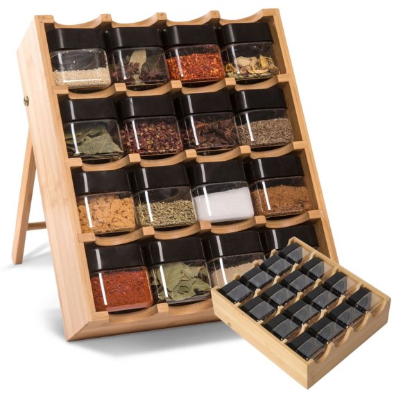 ✅Kompletny Zestaw: W zestawie znajdziesz 16 eleganckich pojemników na przyprawy, które idealnie komponują się ze stojakiem.