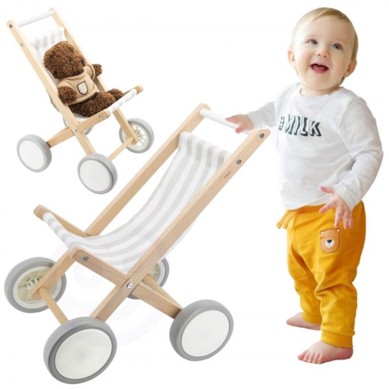 VIGA Drewniany Wózek Dla Lalek Spacerówka 18m+